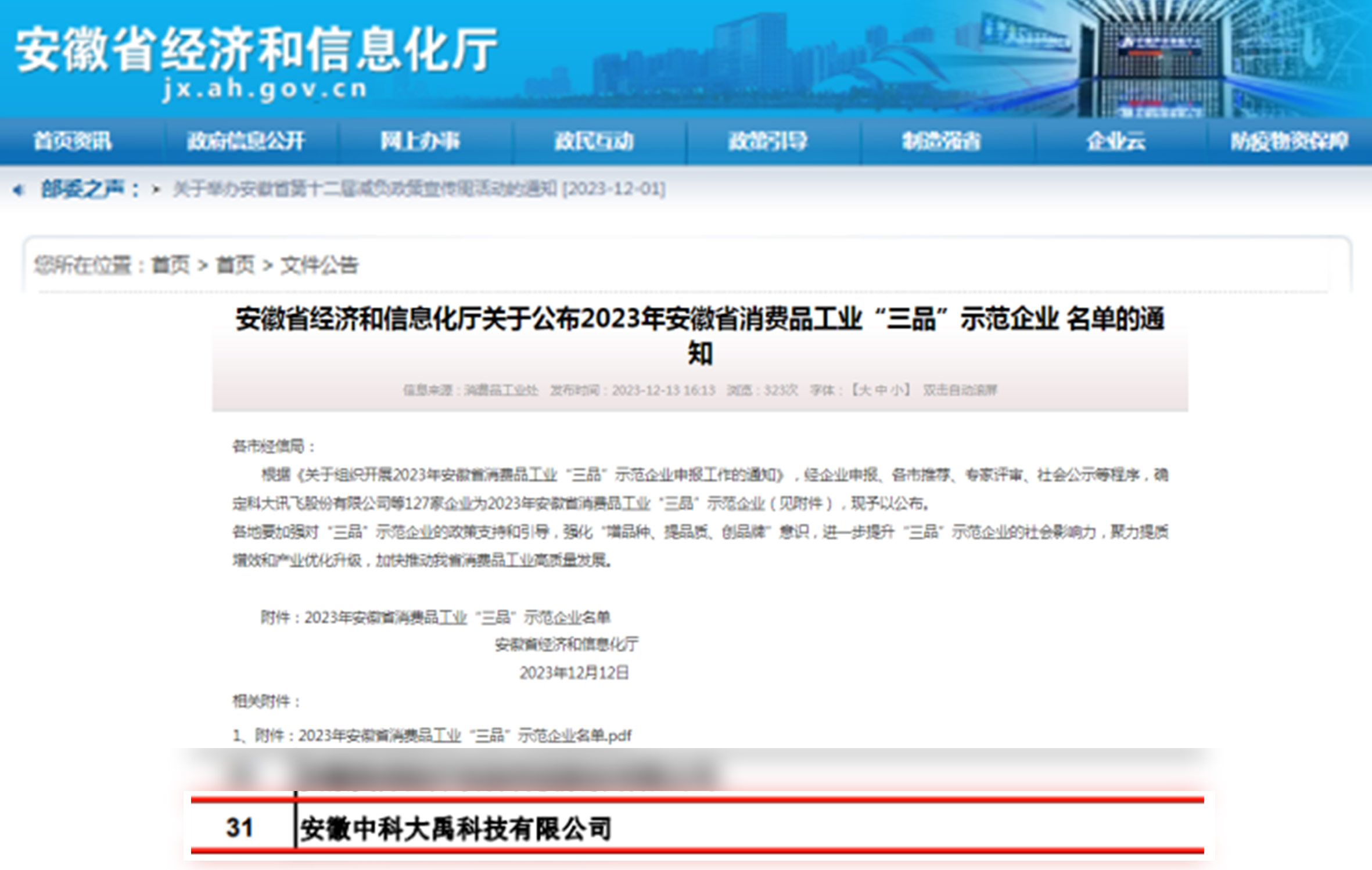 • 入選2023年安徽省消費品工業(yè)“三品”示范企業(yè)