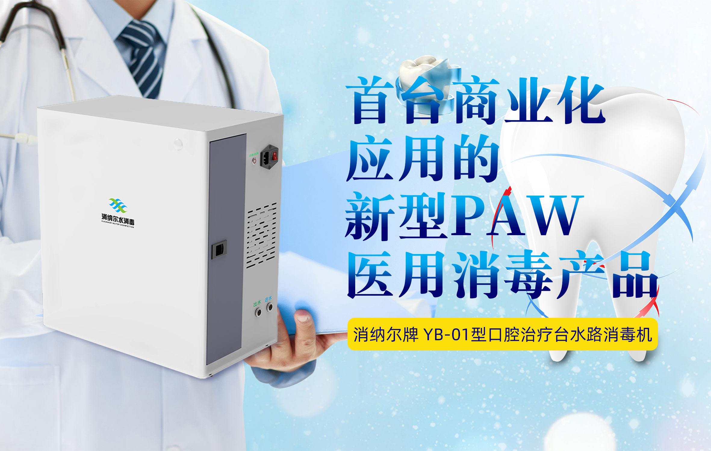 • 首臺商業(yè)化應(yīng)用的新型 PAW 醫(yī)用消毒產(chǎn)品,消納爾牌口腔治療臺水路消毒機